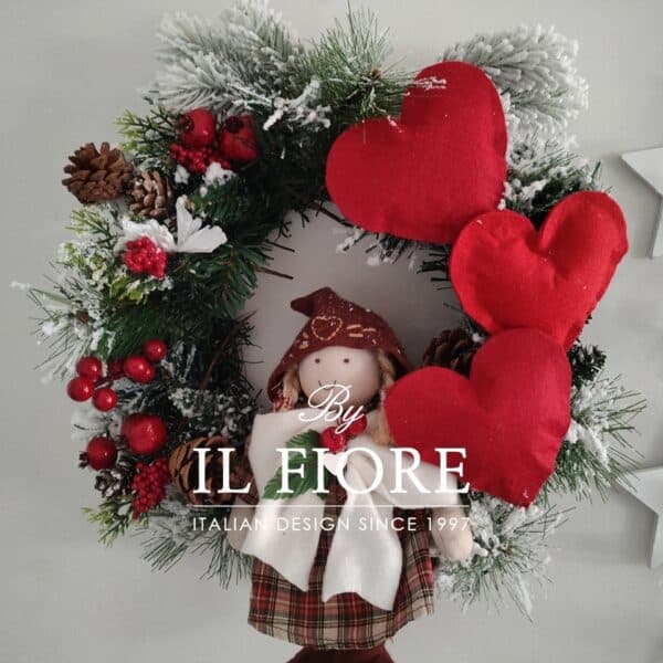 Ghirlanda Natalizia fuoriporta con gnomo cuori e bacche