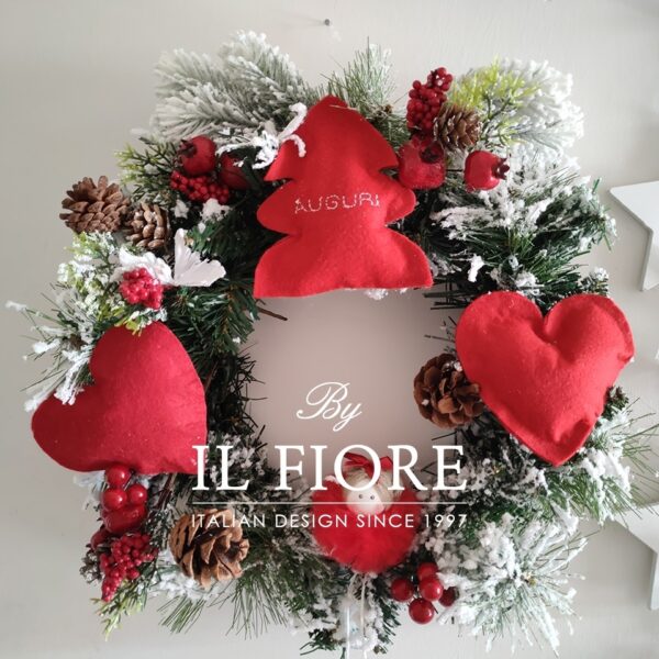 Ghirlanda natalizia con cuori e albero di Natale realizzati a mano in pannolenci.