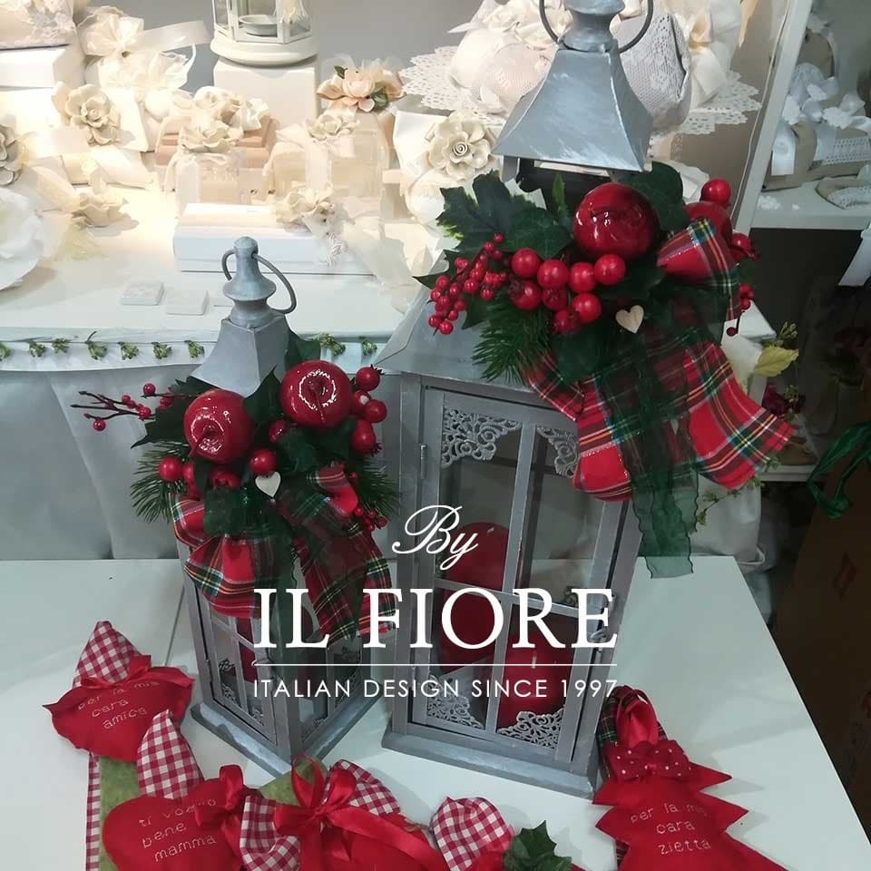 Lanterna natalizia in ferro battuto con bacche rosse