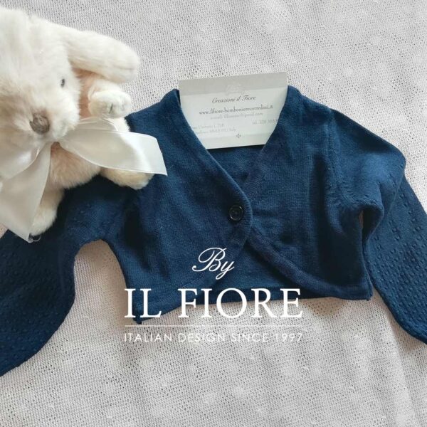 Maglioncino giacchetta bambina, realizzato in cotone 100% di colore blu con maniche lunghe. Made in Italy. Ultime taglie un pezzo 1/3 mesi, un pezzo 3 mesi. Selezionare la taglia desiderata. Prezzo scontato da € 28,00 a € 13,50. Ultimi due pezzi.