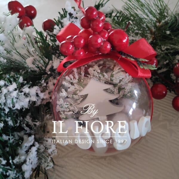 Pallina di Natale per albero di Natale personalizzabile con nome decorata con albero di Natale e bacche. Confezionata con scatola regalo e adesivo con il nome della persona a cui sarà regalata. Sarà un regalo molto apprezzato perchè realizzato a mano.