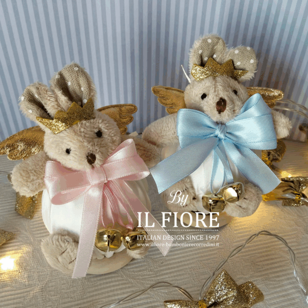 Decorazione natalizia per albero di Natale pallina coniglietti per bimbo e bimba. Originale addobbo natalizio e articolo da regalo. Compresa nel prezzo la confezione regalo.