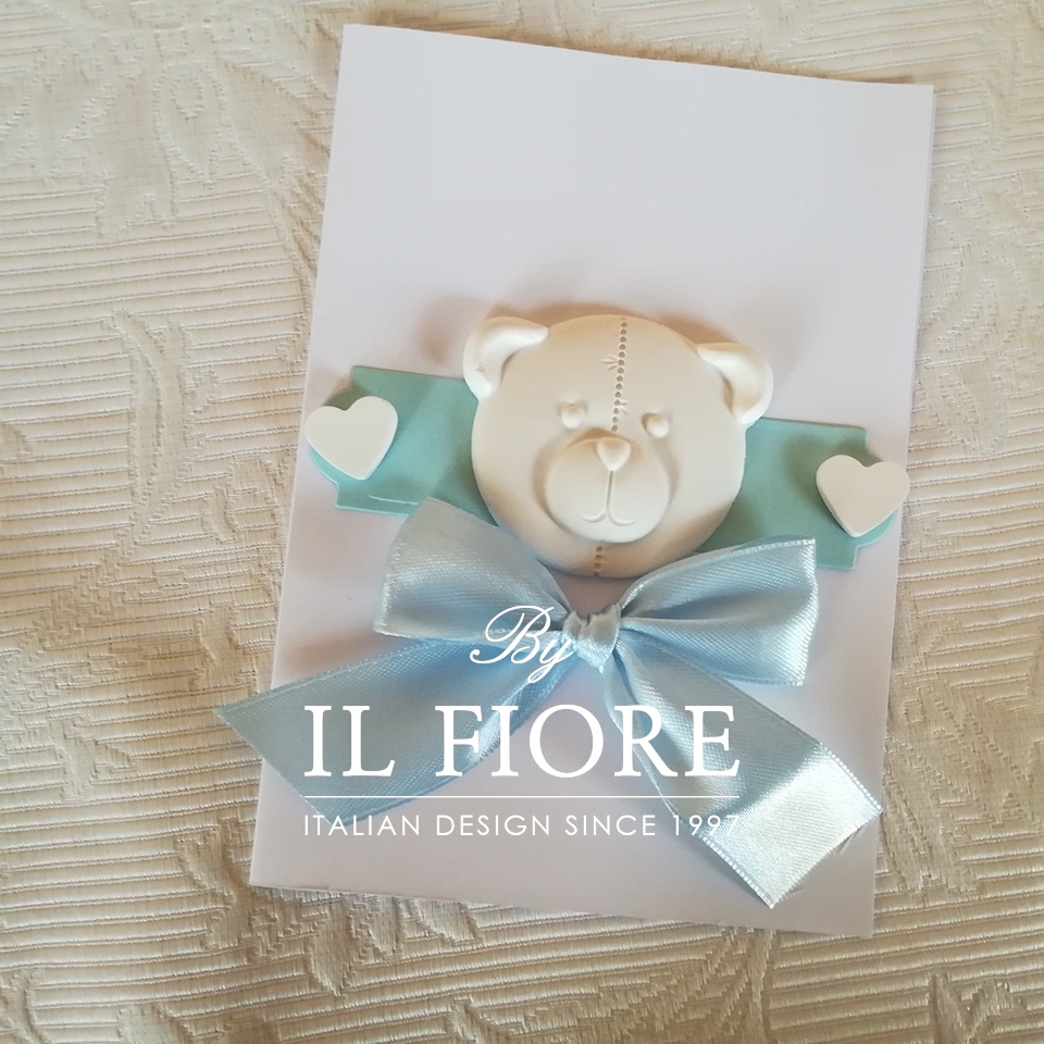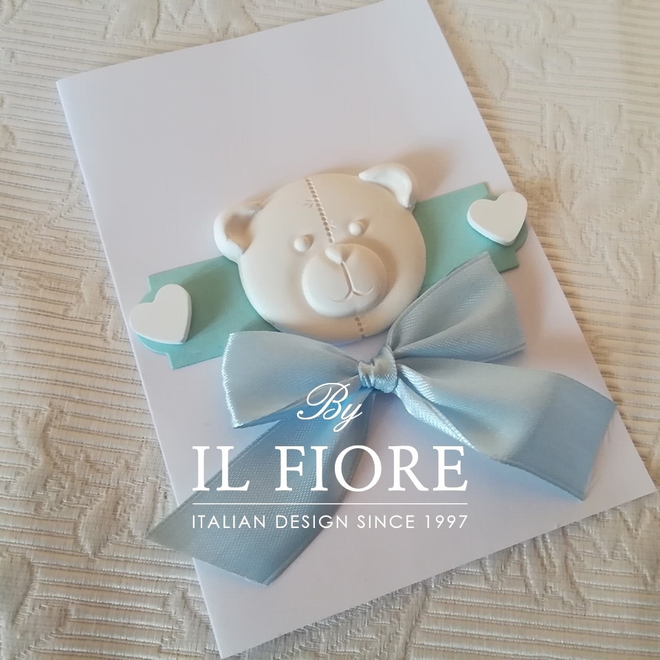Partecipazione Battesimo bimbo con orsetto e cuori in gesso