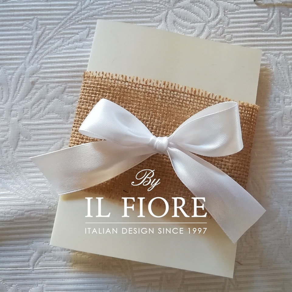 Partecipazione Matrimonio, Comunione, Cresima e anniversario matrimonio decorata con fascia in juta e nastro di raso.