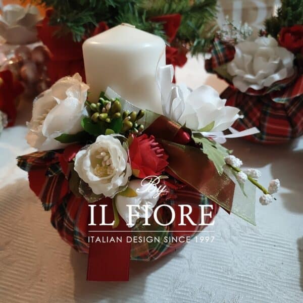 Centrotavola Natalizio fatto a mano con candela e fiori