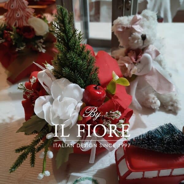 Puffo centrotavola Natalizio rosso fatto a mano con alberello e fiori