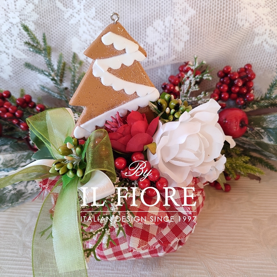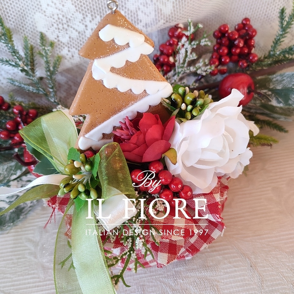 Decorazione Natalizia fatta a mano con fiori e albero di Natale