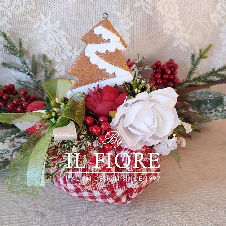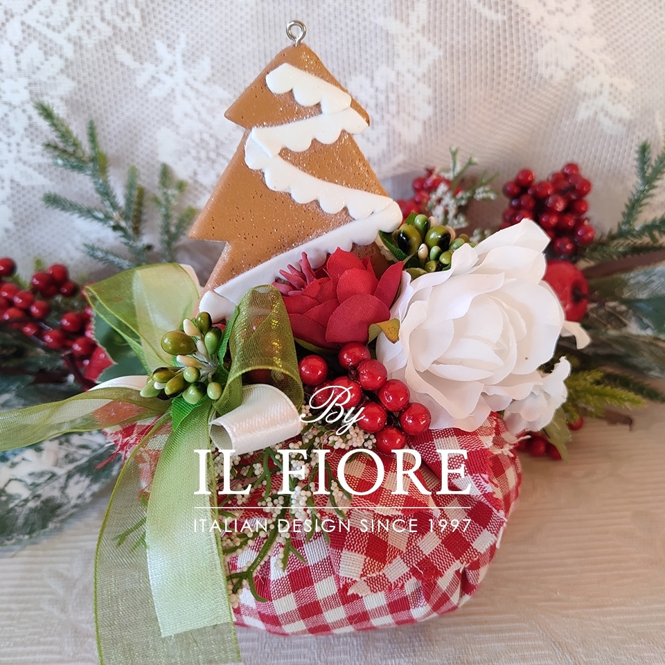 Puffo natalizio interamente fatta mano con fiori e albero di Natale. Splendido ed originale regalo di Natale fatto con il cuore.