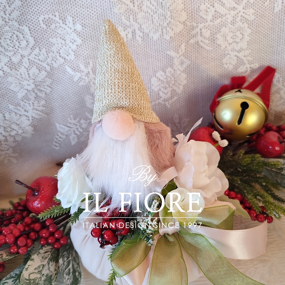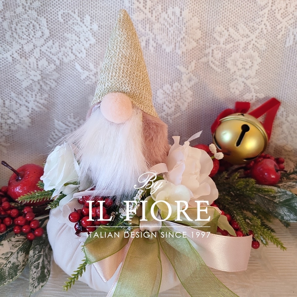Puffo Natalizio fatto a mano con fiori e gnomo