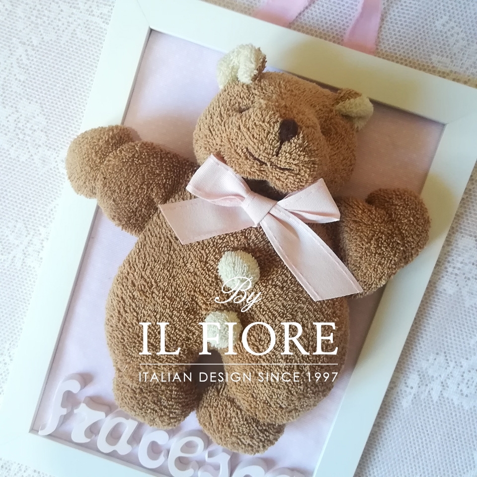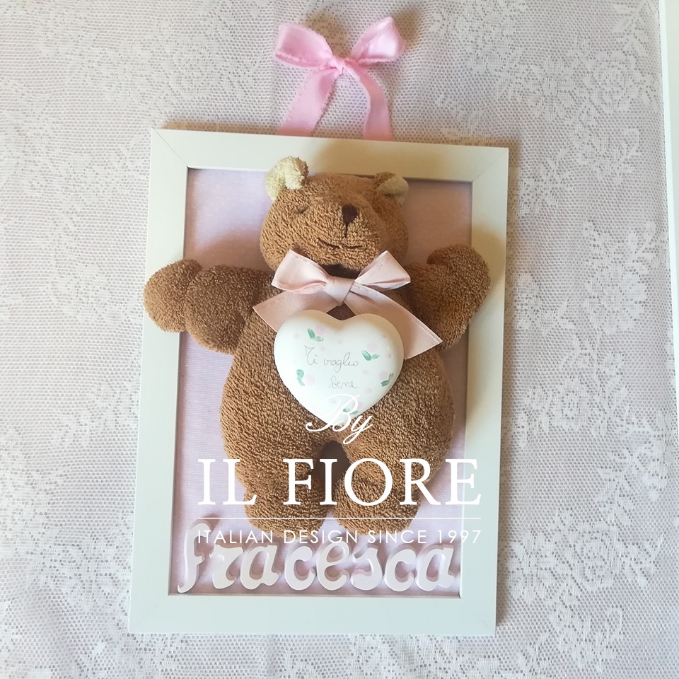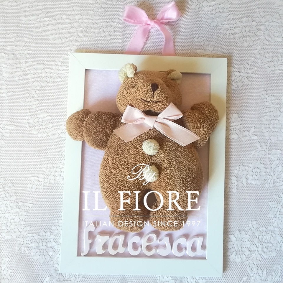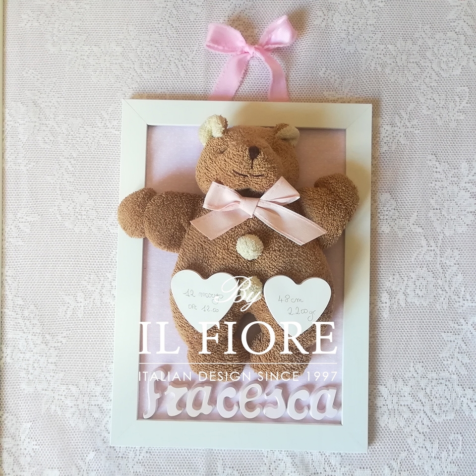 Quadretto nascita bimba e bimbo, orsetto tenerone personalizzabile con gessetti profumati con nome, data di nascita, peso, lunghezza e ora. Misura cornice cm 33 x 24.