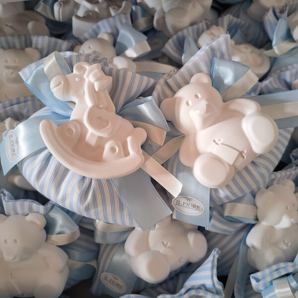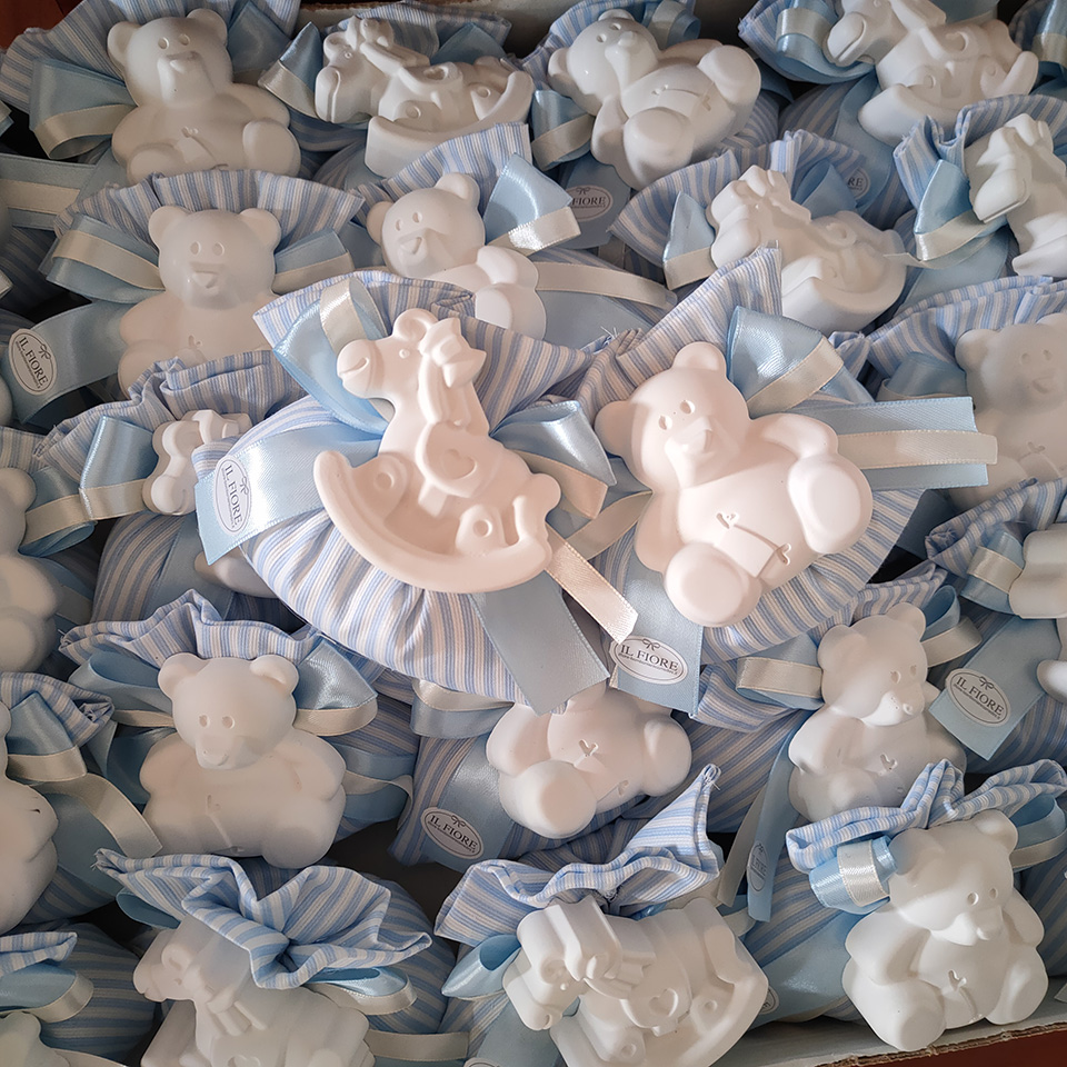 Le bomboniere saranno confezionate con i gessetti orso e cavalluccio a dondolo grande come foto.