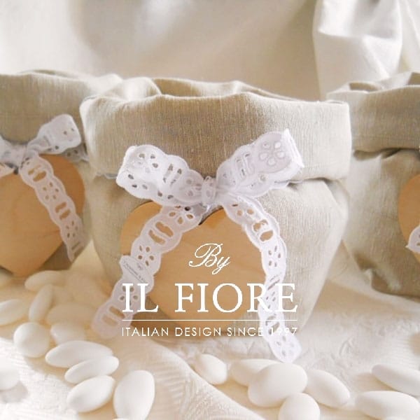 Sacchetto per confettate Comunione, matrimonio, Cresima e anniversari matrimonio Shabby Chic realizzata  in cotone con fiocco in sangallo e cuore in legno. Bomboniera portaconfetti per realizzare bellissimi tavoli con confettate di ogni gusto per soddisfare tutti i vostri ospiti.