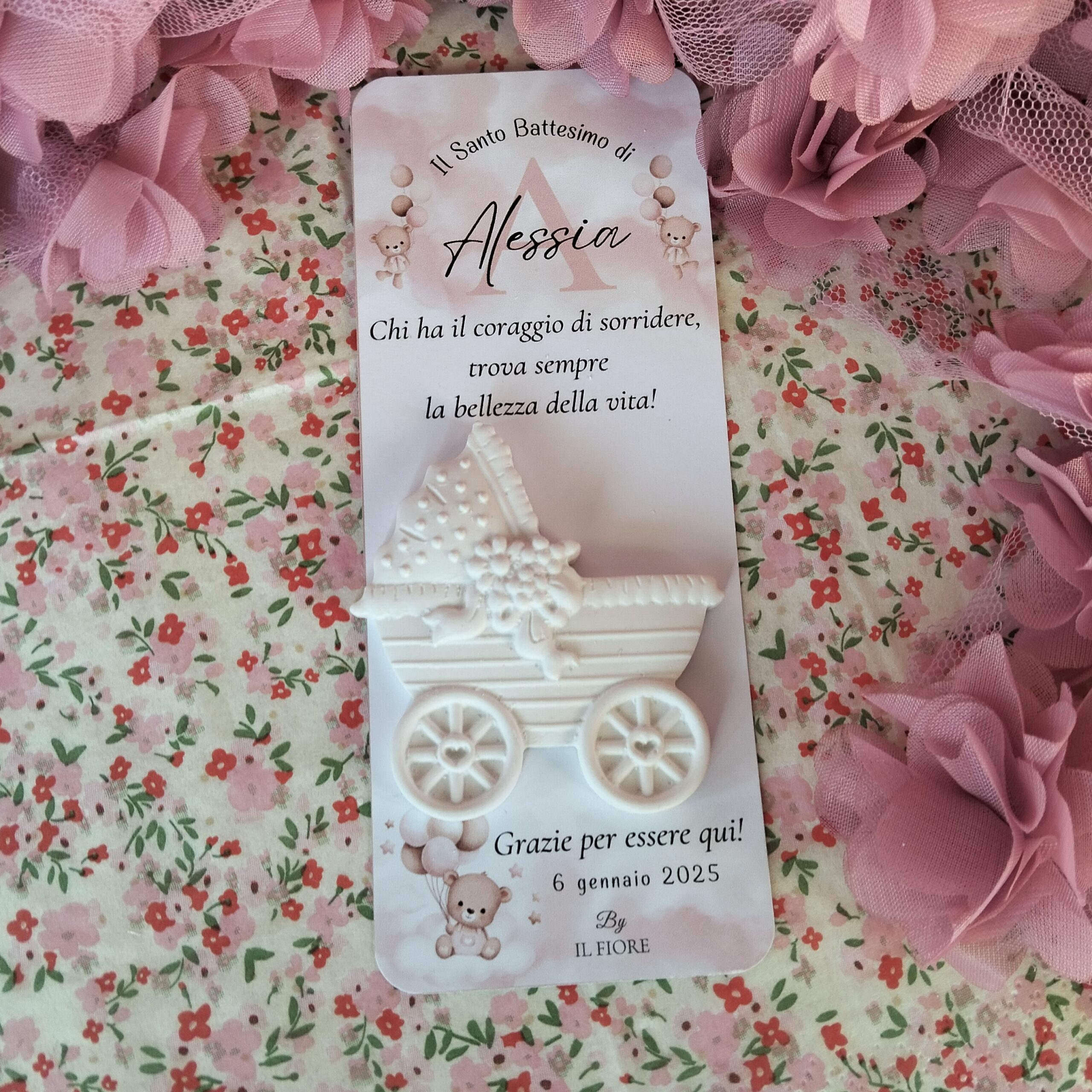 Segnaposti Battesimo BIMBA/BIMBO con carrozzina