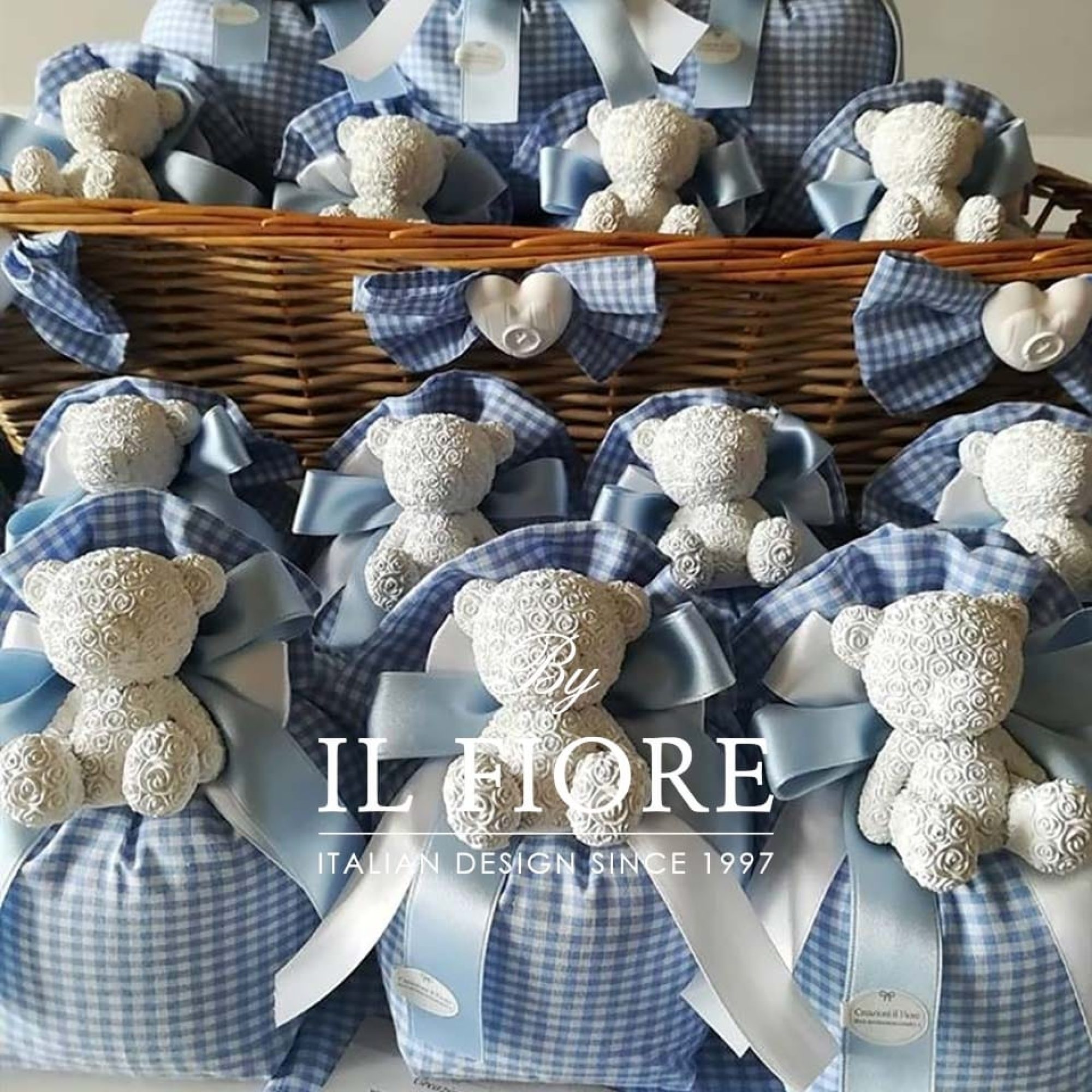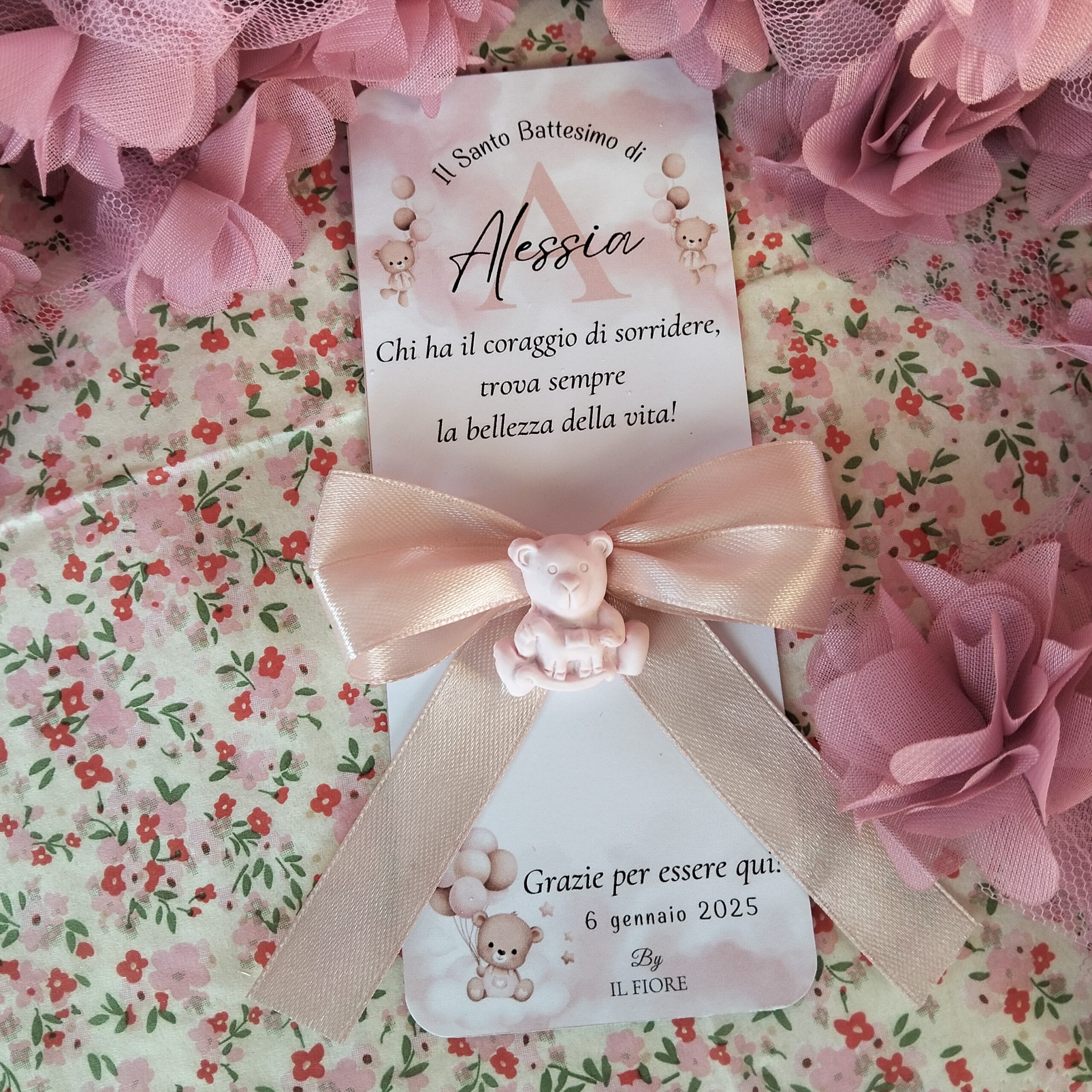 Segnaposti Battesimo bimba con orsetto e cartoncino.
