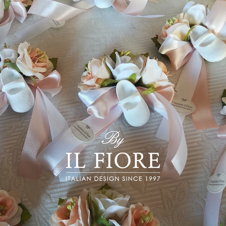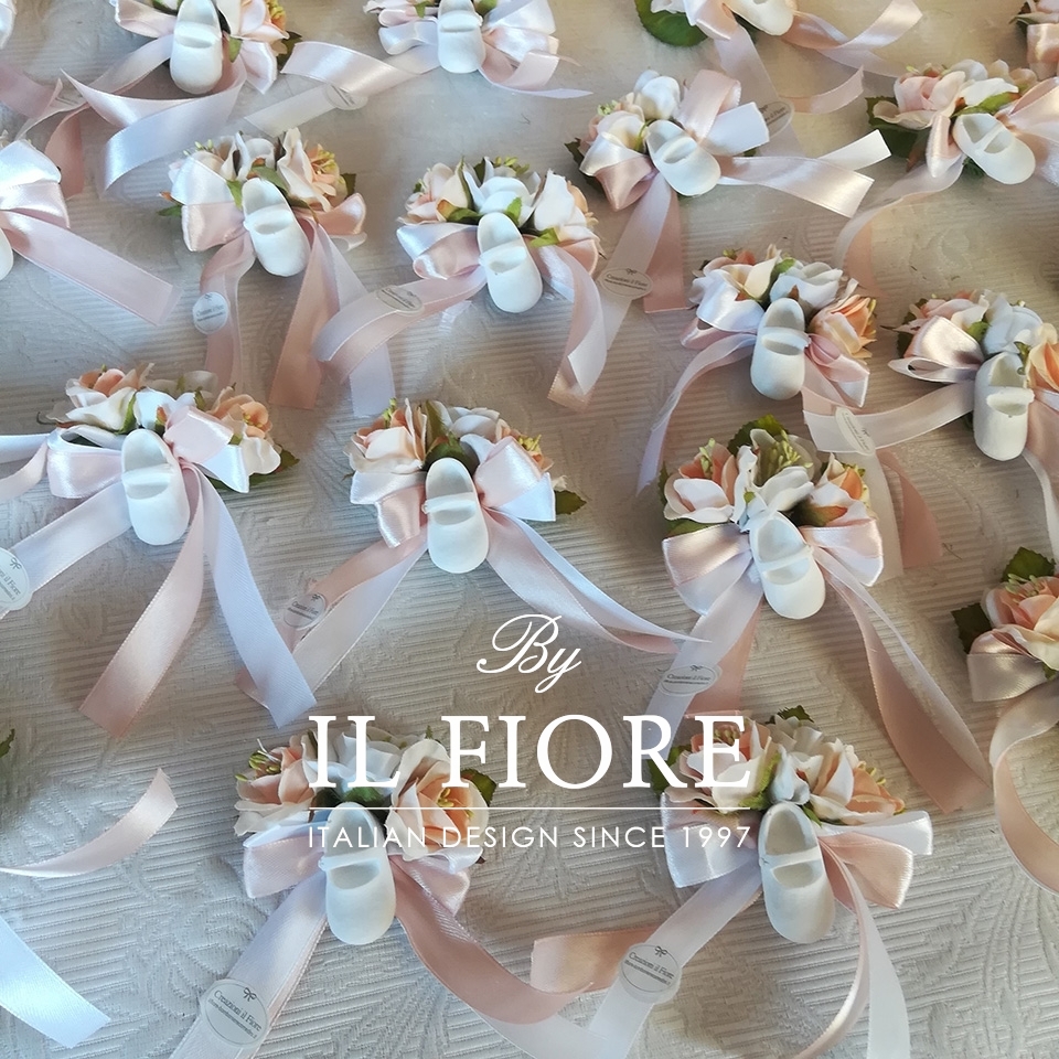 Segnaposti Battesimo con fiori e scarpetta
