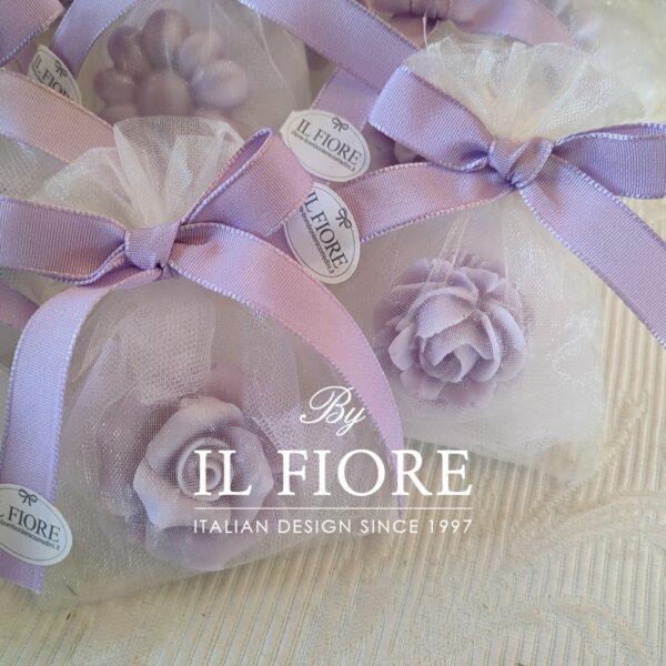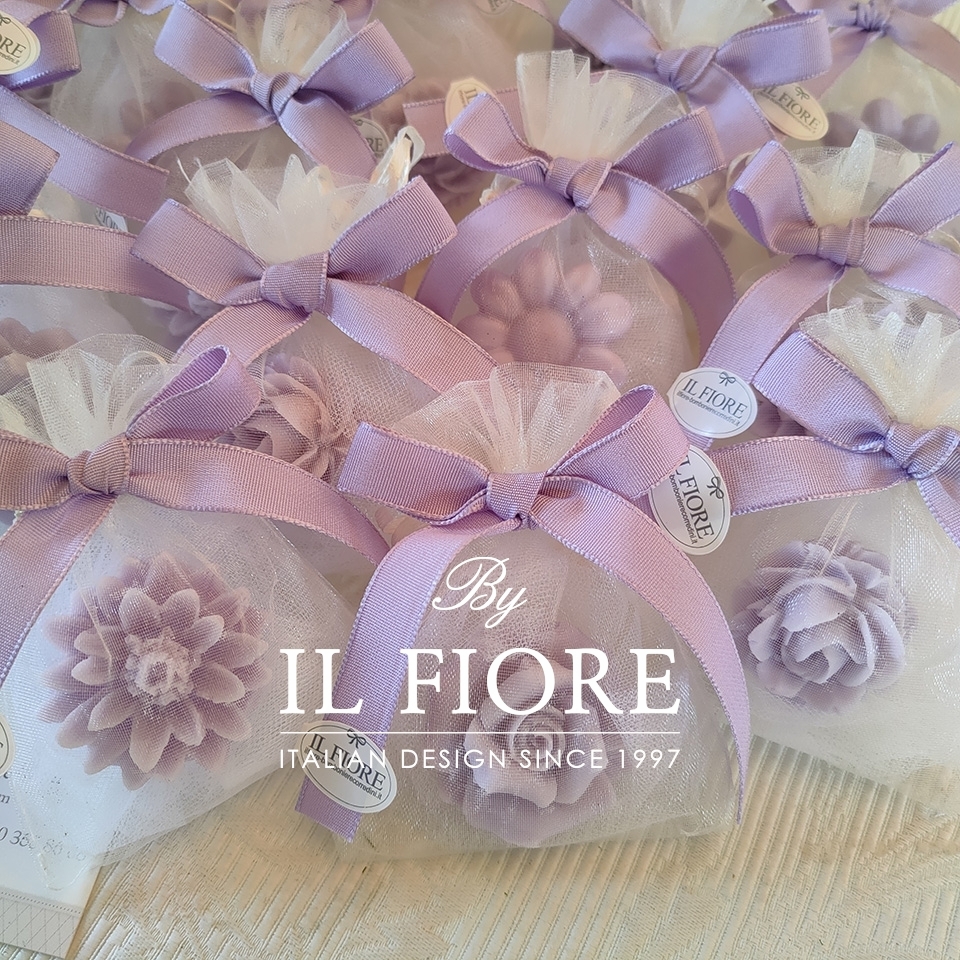 Segnaposti candele fiori con sacchetto in organza